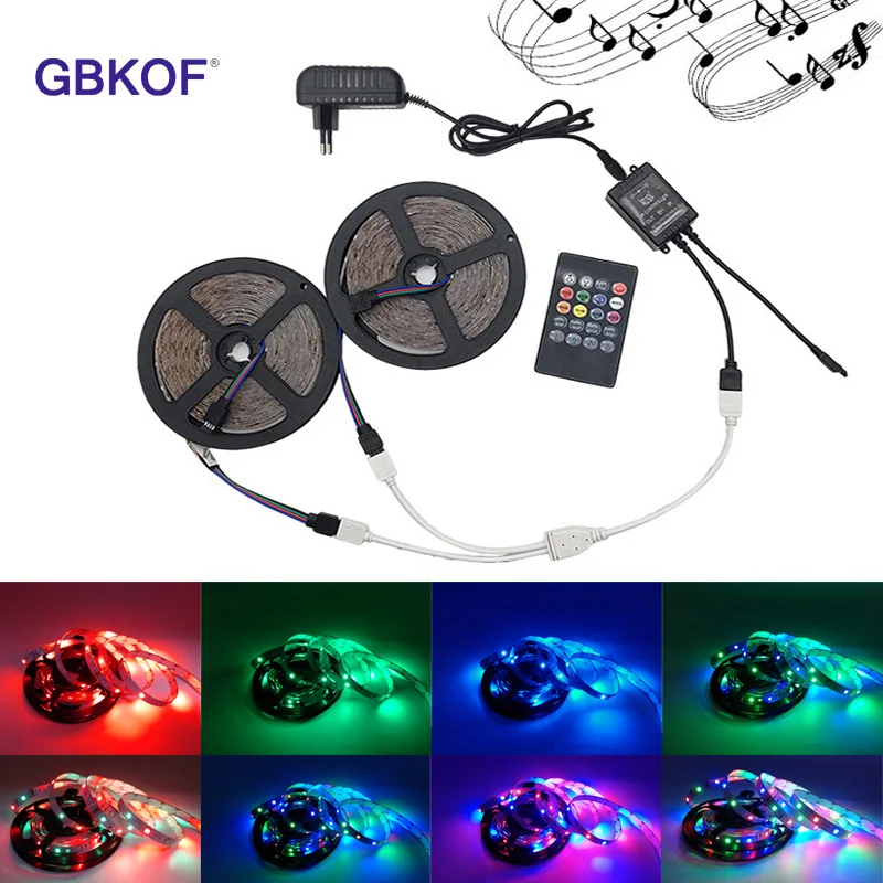 Cheap RGB LED Strip 3528 non waterproof 5M 10M set Fita led light birthday present diode led tape set+Mus